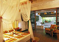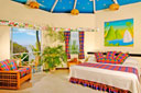 Extremley spacious and individually designed, some in a very open-air style with the fourth wall missing and some with dramatic open roof dormers. Some rooms have a formal separation between bedroom and living room, others are wide open spaces flowing into each other. Clay floor tiles or tropical hardwood floor, king size bed, wooden jalousie louvres, ceiling fans, balconies, and very large ensuite bathrooms with 2 sinks, shower and WC, Piton and/or Sea view. View Room Overview |